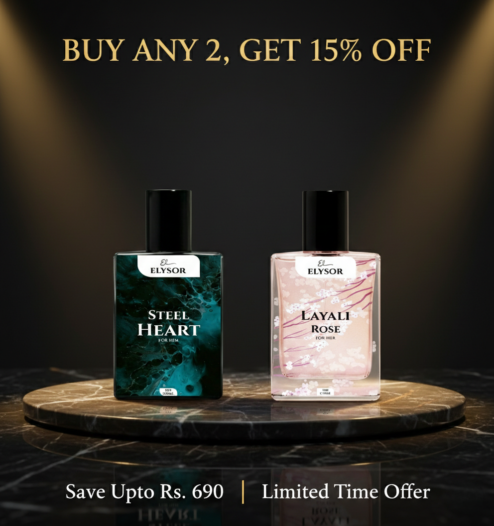 Pair your favorite Elysor premium fragrances and enjoy 15% OFF — the perfect duo for everyday elegance.Save RS 690