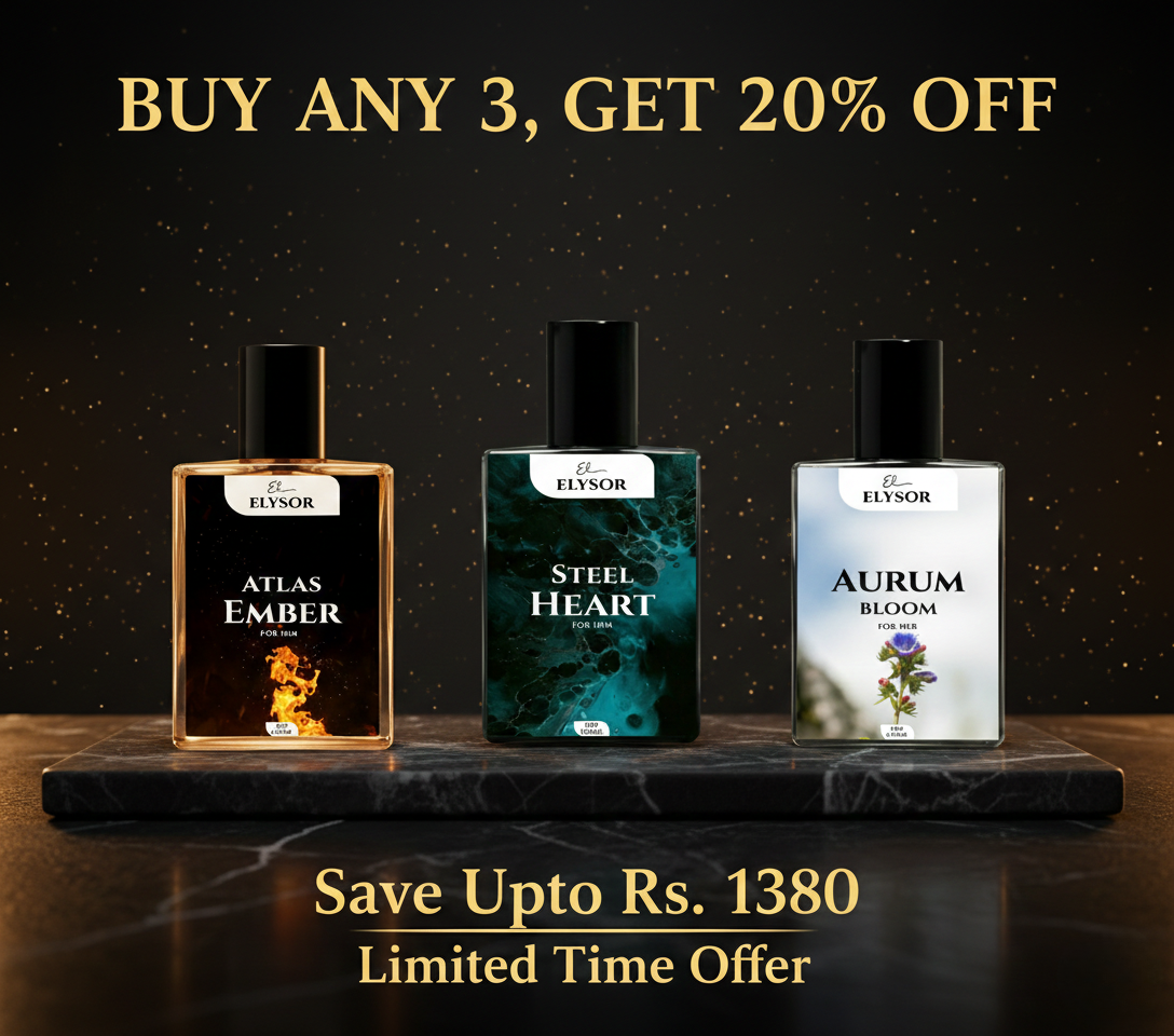 Create your signature collection with three Elysor perfumes and unlock 20% OFF — more variety, more value.